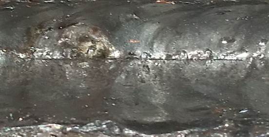 上圖焊縫電弧汽包切開后,下圖黑線處明顯反應出兩板母材未熔合缺陷。