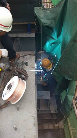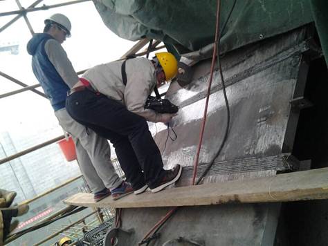 圖5經電弧氣爆刨開,返修后焊縫經探傷達到圖紙要求的一級焊縫標準,探傷人員進行檢測。