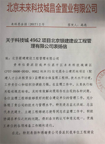 衣洪超同志自2009年入職我公司后工作勤奮努力,經過幾年的培養考察,該同志于2016年12月被調到昌平未來科技城4962項目擔任總監理工程師,帶領項目部全體員工團結協作,認真執行相關規范標準,及時有效協調參建各方,解決現場存在出現的各種問題,得到了建設單位的表揚,為我公司樹立了良好的企業形象和社會口碑。